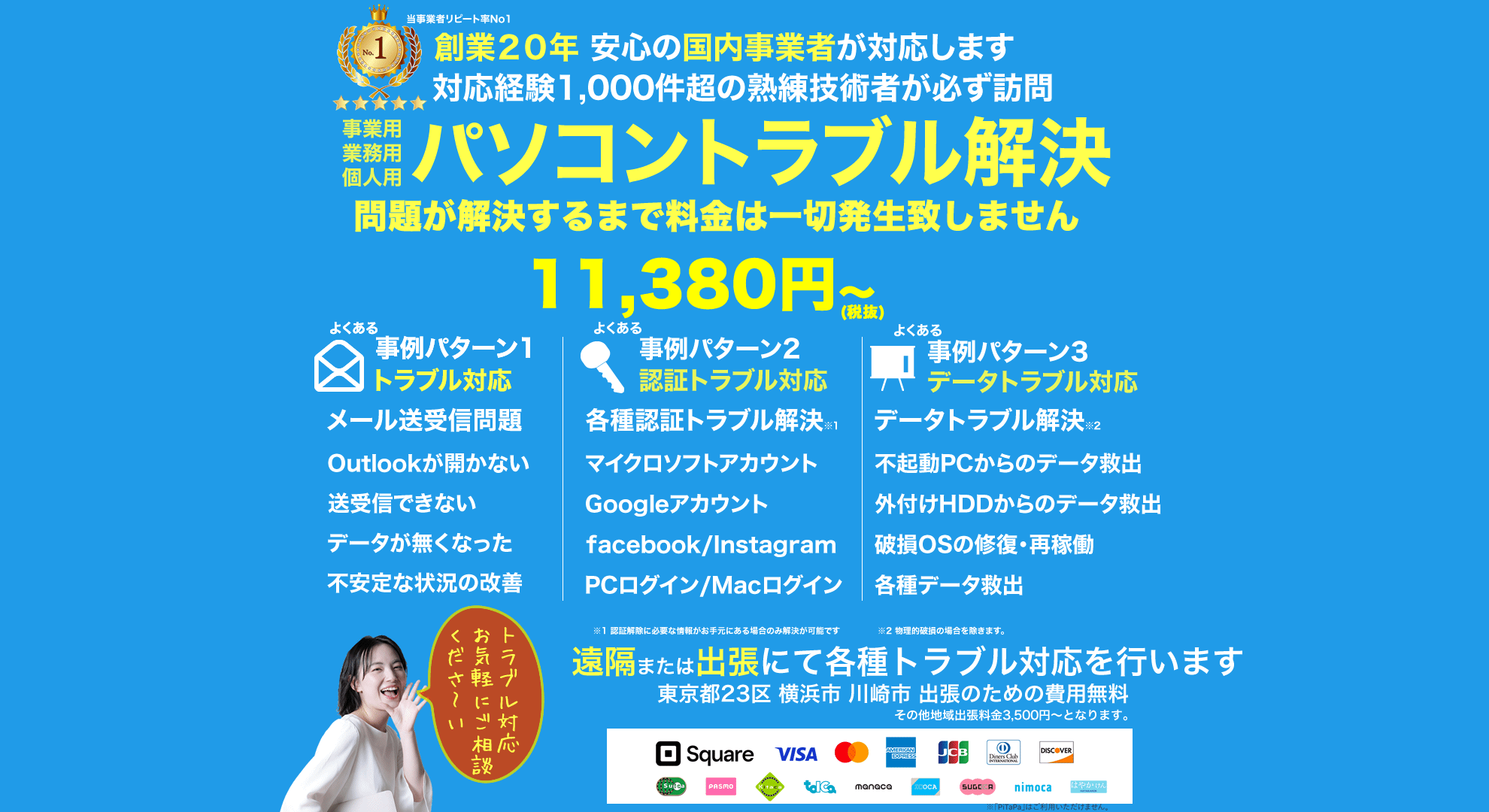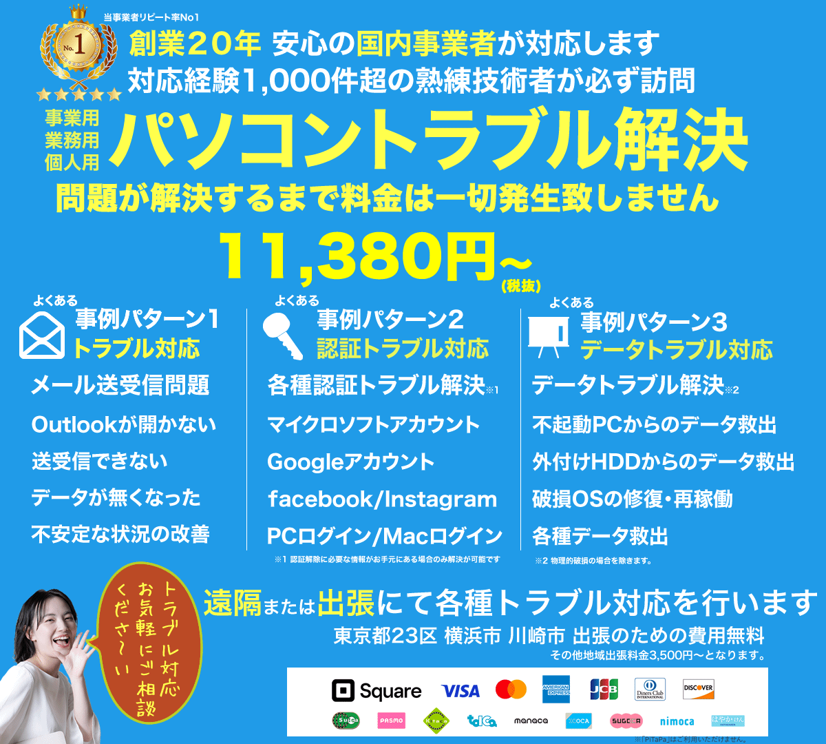 東京都23区内・横浜市・川崎市は出張料無料